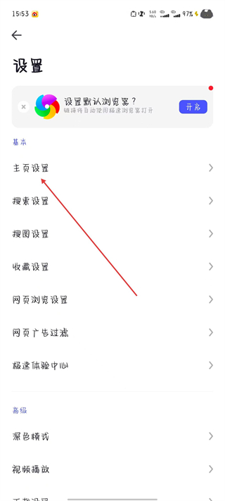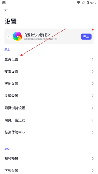 3、在設置頁面找到主頁設置,點擊進入主頁設置頁面。