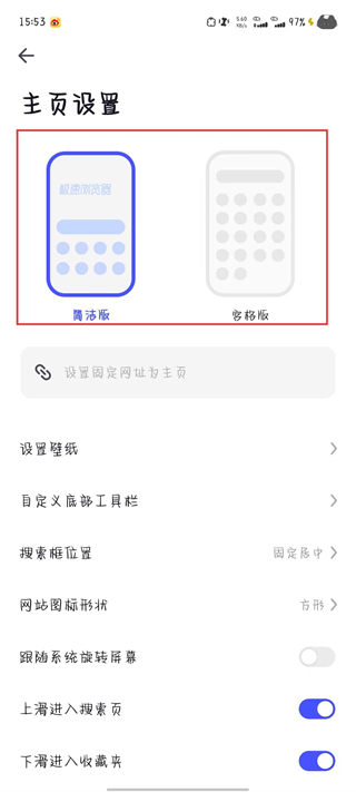4、在主頁設置頁面,可選擇簡潔版或宮格版主頁樣式。