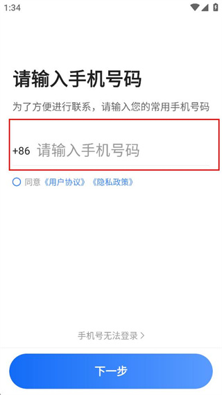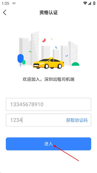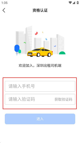 1、打開深圳出租司機(jī)端軟件,進(jìn)入請(qǐng)輸入手機(jī)號(hào)碼頁面,在對(duì)應(yīng)輸入框填寫常用手機(jī)號(hào)。