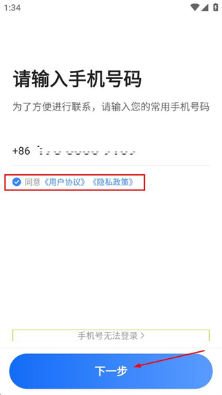 2、勾選同意用戶協(xié)議和隱私政策選項(xiàng),確認(rèn)信息無誤后點(diǎn)擊下一步按鈕。