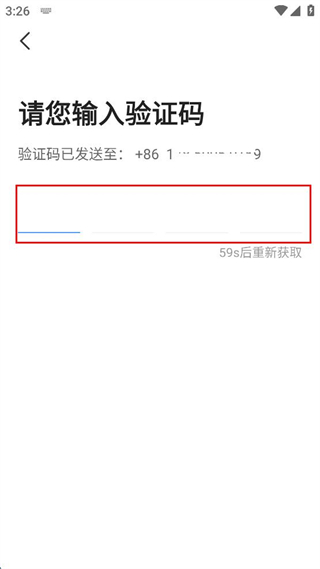 2、在驗證碼輸入頁面,輸入收到的驗證碼。