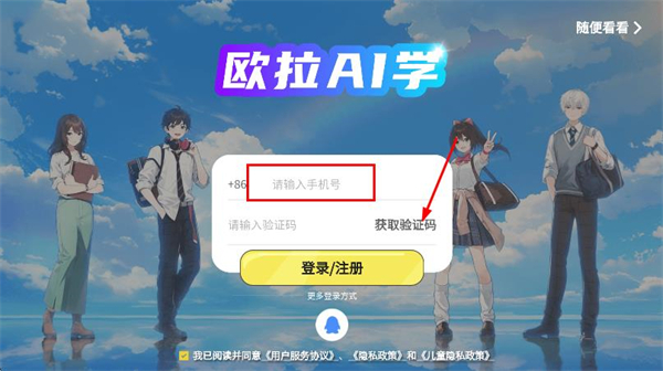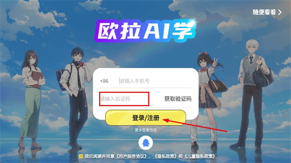 4、填入收到的驗(yàn)證碼,點(diǎn)擊登錄/注冊(cè)即可登錄賬號(hào)。