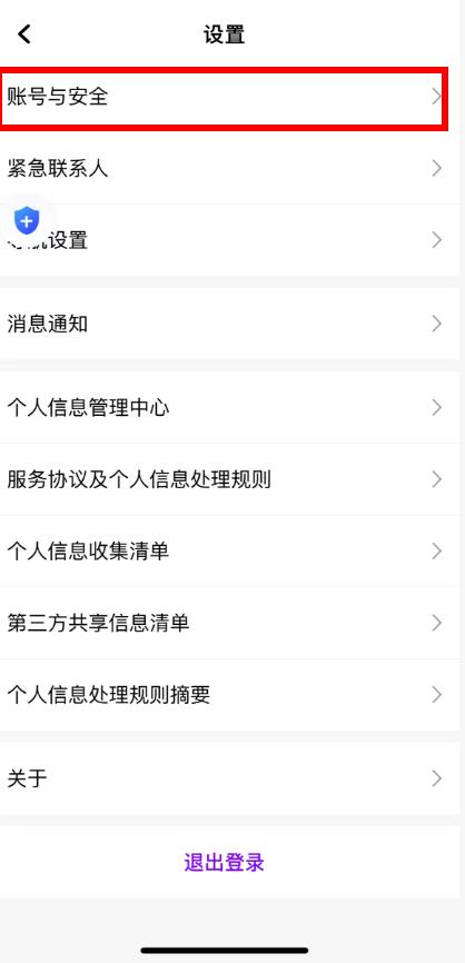 2、在設(shè)置頁面點(diǎn)擊賬號與安全,進(jìn)入賬號與安全頁面。