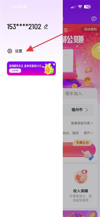 1、打開花小豬司機(jī)端APP,點(diǎn)擊設(shè)置,進(jìn)入設(shè)置頁面。