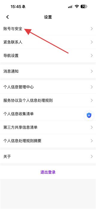 2、進(jìn)入設(shè)置頁面后,點(diǎn)擊賬號與安全選項(xiàng)。
