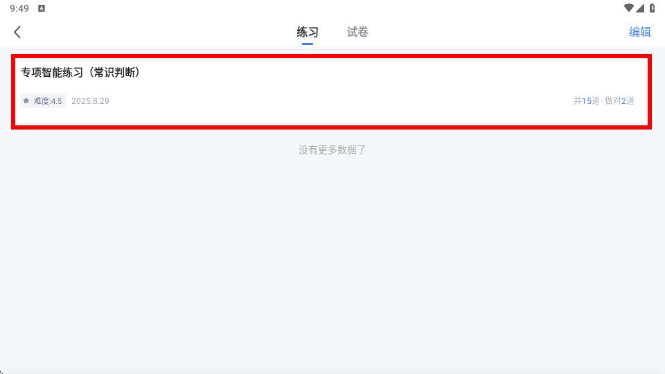 3、在練習(xí)歷史界面里,就能看到之前做過的題目記錄,還能查看題目難度、練習(xí)日期、題目數(shù)量和答對情況等信息。
