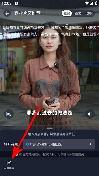 3、在商業(yè)片區(qū)推薦頁(yè)面,可點(diǎn)擊左下角示例報(bào)告查看示例。