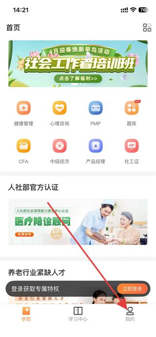 1、打開登塔學苑app,點擊底部導航欄我的選項。