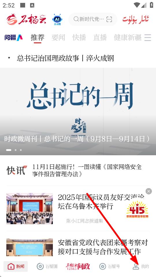 1、打開(kāi)石榴云app,點(diǎn)擊底部導(dǎo)航欄最右側(cè)的我的進(jìn)入個(gè)人頁(yè)面。
