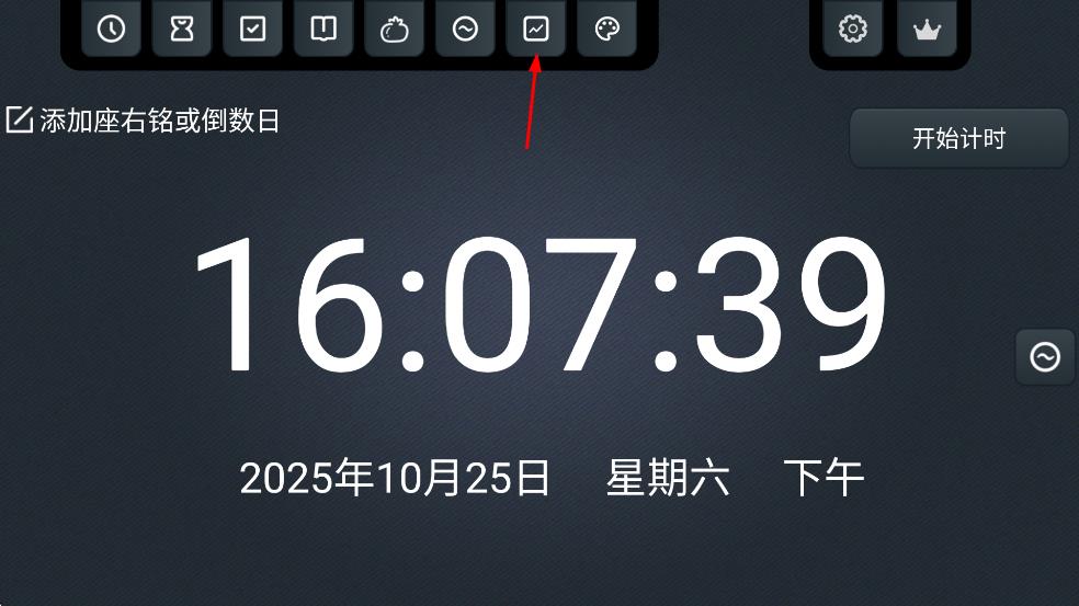 2、設(shè)置好背景音后,返回主界面,點(diǎn)擊上方統(tǒng)計(jì)圖標(biāo)。