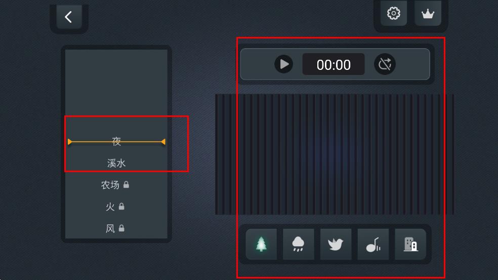 1、打開時(shí)間管理APP,點(diǎn)擊上方音效圖標(biāo),進(jìn)入音效設(shè)置界面,選擇背景音為溪水。
