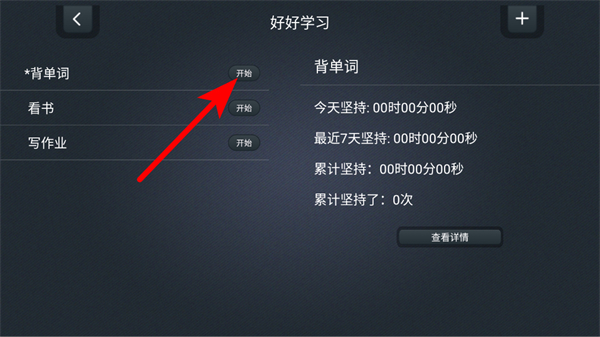 3、在計(jì)時(shí)任務(wù)創(chuàng)建界面,選擇要計(jì)時(shí)的任務(wù),如背單詞,點(diǎn)擊開始按鈕。