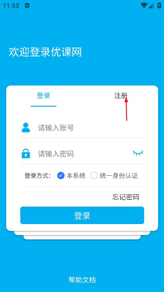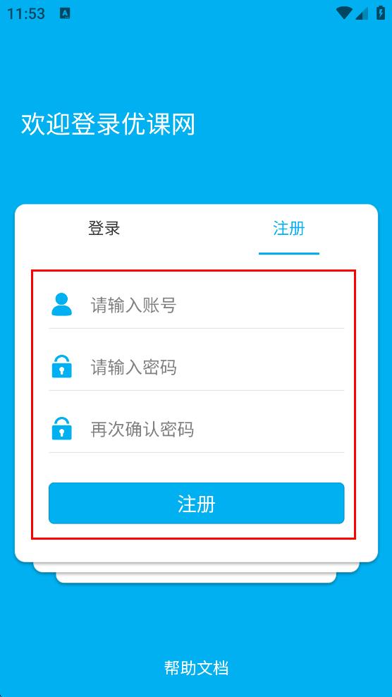 3、在登錄頁面,點擊“注冊”選項,進入注冊界面,輸入賬號、密碼并再次確認密碼。