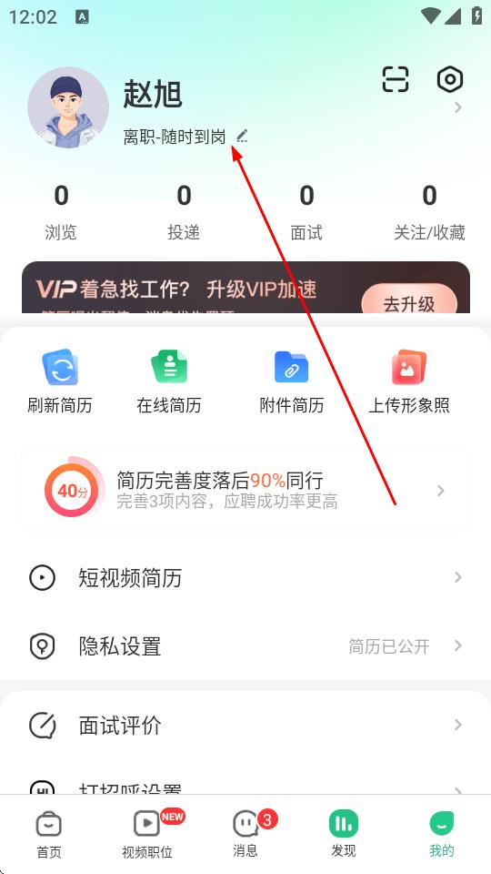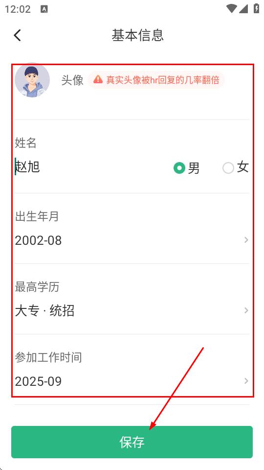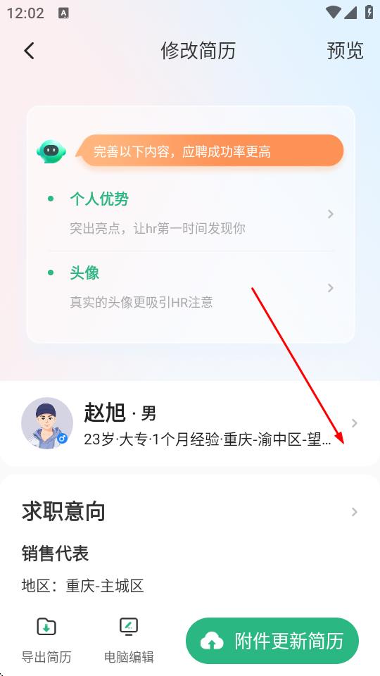 3、進(jìn)入修改簡(jiǎn)歷頁(yè)面,點(diǎn)擊個(gè)人信息區(qū)域。