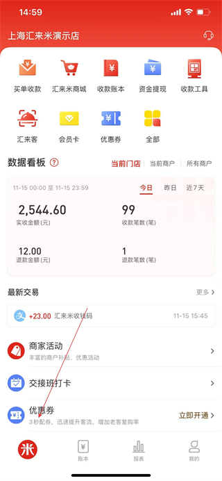 2.首頁賬本實時更新,隨時查看門店收入,了解經(jīng)營狀況及生意動態(tài)。