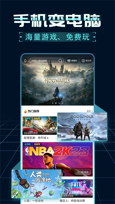 云電腦游戲菜單,暢玩3000+精品游戲。