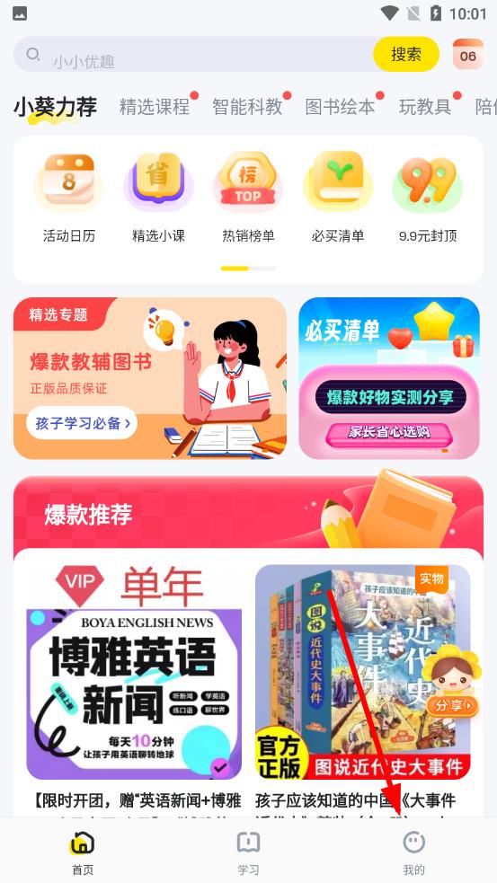1、打開向日葵媽媽app,進入首頁后,點擊底部導航欄中的我的選項。