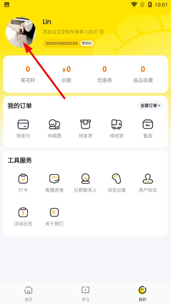 2、在我的頁面點擊頭像區(qū)域,進入個人信息設置界面。