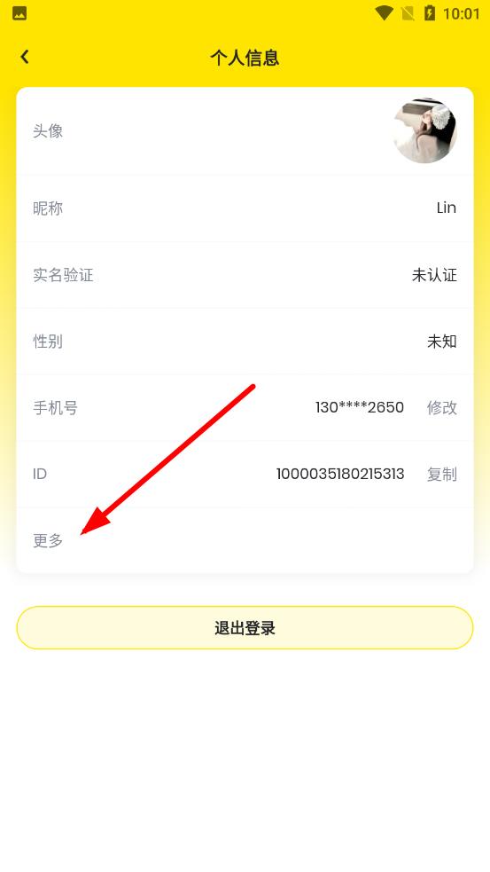 3、在個人信息界面中,找到并點擊更多選項,進入更多設置頁面。