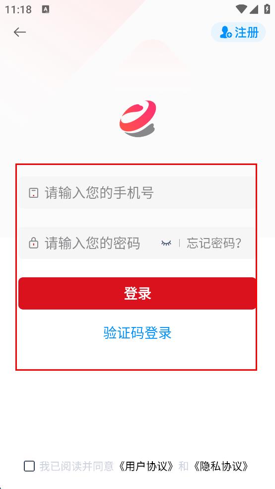 4、在登錄方式選擇頁(yè)面,可選擇賬號(hào)密碼登錄或驗(yàn)證碼登錄,若選賬號(hào)密碼登錄,輸入手機(jī)號(hào)碼和密碼,勾選同意相關(guān)協(xié)議后,點(diǎn)擊“登錄”按鈕。