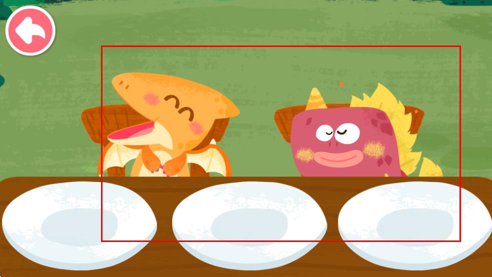 4、完成互動后,與恐龍一起在餐桌前,繼續(xù)后續(xù)游戲環(huán)節(jié)。