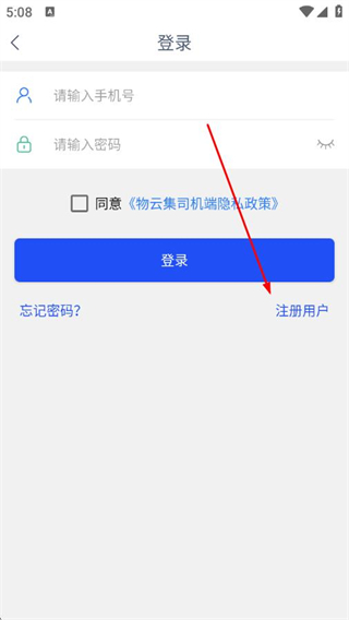 3、在登錄界面點(diǎn)擊注冊(cè)用戶,進(jìn)入注冊(cè)界面。