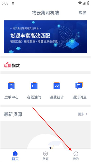 1、打開(kāi)物云集司機(jī)端APP,點(diǎn)擊底部我的選項(xiàng),進(jìn)入個(gè)人中心頁(yè)面。