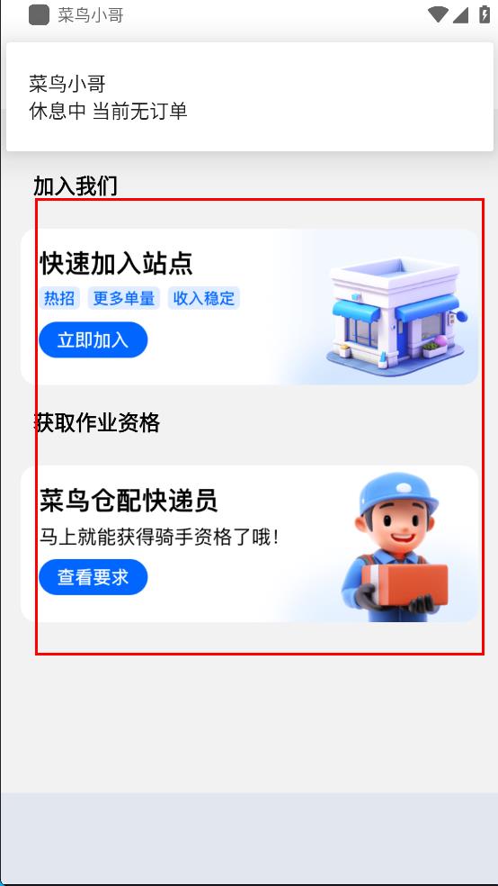 4、注冊(cè)成功后,進(jìn)入APP主界面,可看到“快速加入站點(diǎn)”“獲取作業(yè)資格”等板塊,根據(jù)需求,點(diǎn)擊相應(yīng)板塊的按鈕,如“立即加入”或“查看要求”,進(jìn)行后續(xù)操作。