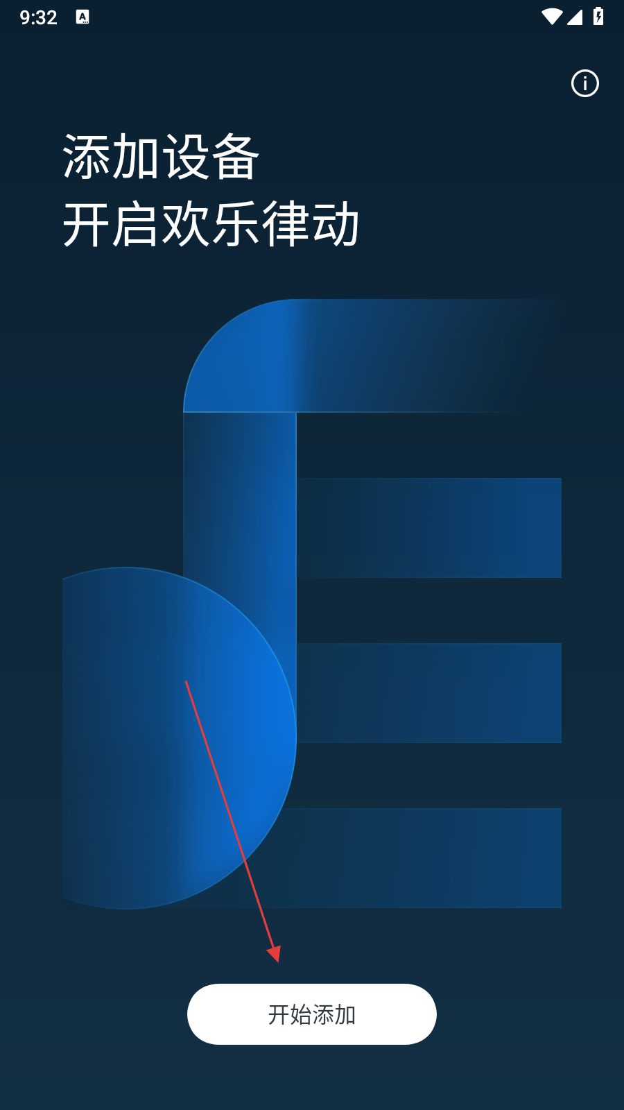 1、打開歡律APP,在添加設(shè)備頁面點(diǎn)擊開始添加按鈕,進(jìn)入掃描界面。