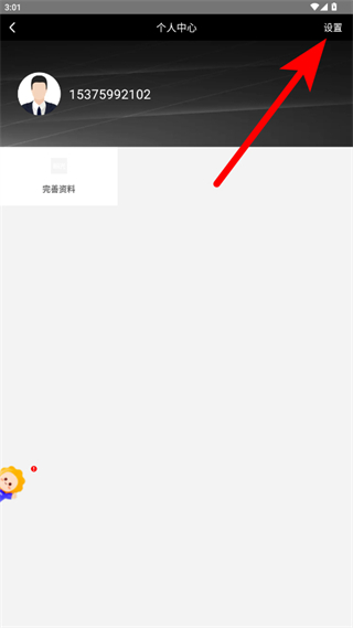 1、打開陽光車主APP,進(jìn)入個人中心頁面后點(diǎn)擊右上角設(shè)置,進(jìn)入設(shè)置頁面。