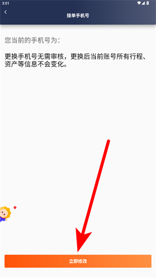 4、在接單手機(jī)號頁面點(diǎn)擊立即修改,即可修改陽光車主綁定的手機(jī)號碼。