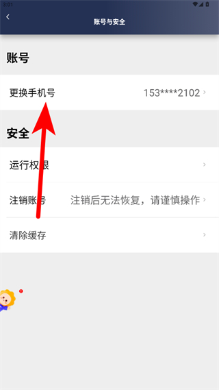 3、在賬號與安全頁面點(diǎn)擊更換手機(jī)號,進(jìn)入接單手機(jī)號頁面。