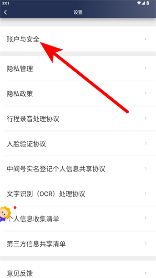 2、在設(shè)置頁面點(diǎn)擊賬戶與安全,進(jìn)入賬號與安全頁面。