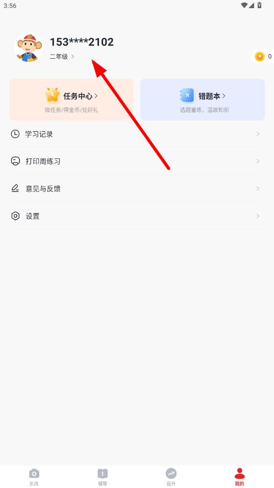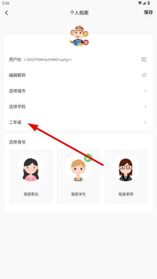 3、在個人檔案頁面里,點擊當(dāng)前顯示的年級如二年級。