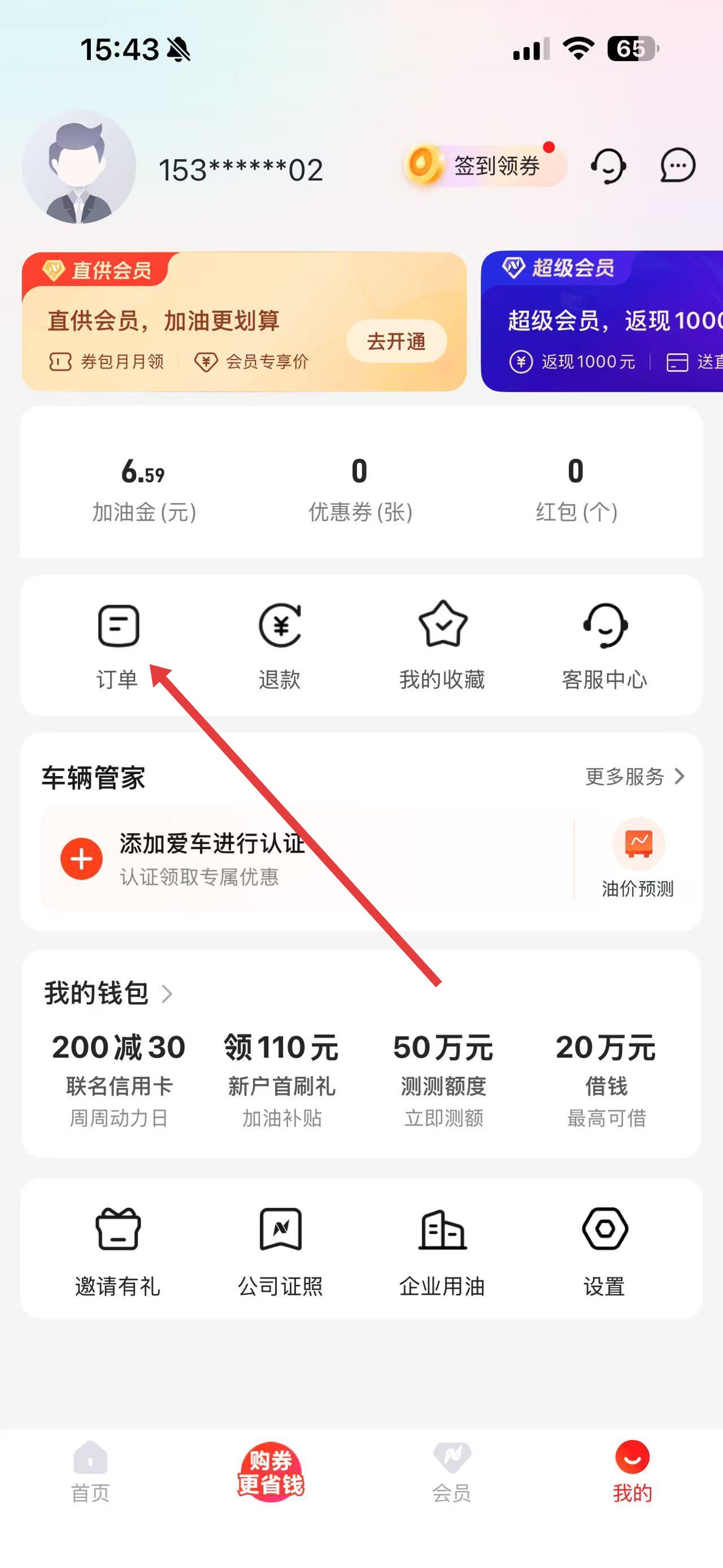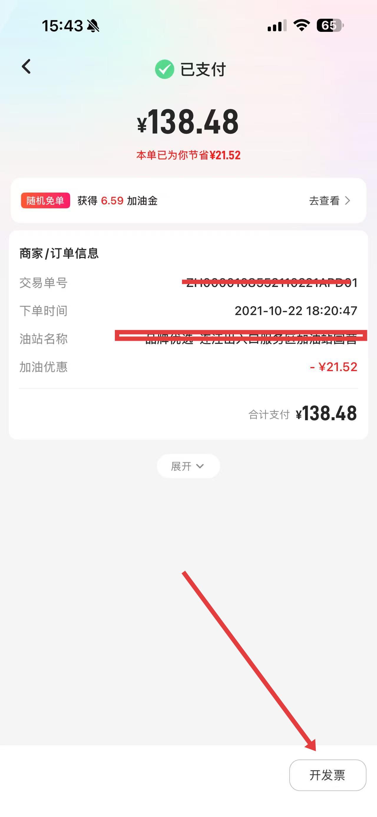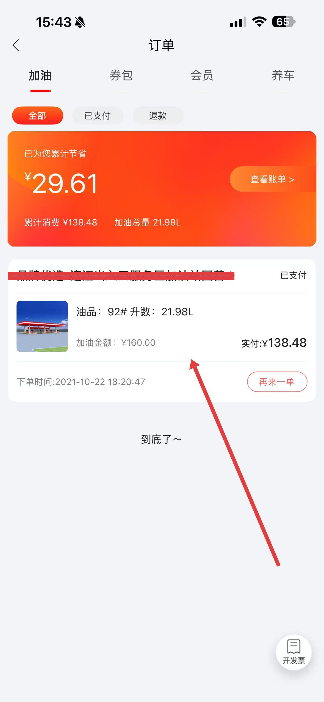 3、在訂單界面找到需要開發(fā)票的加油訂單,點擊進(jìn)入訂單詳情頁。