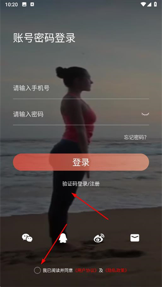 1、打開派健康app,勾選同意用戶協(xié)議及隱私政策,點擊驗證碼登錄/注冊選項。
