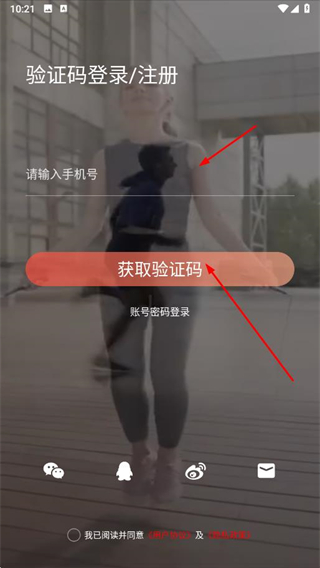 2、在驗證碼登錄/注冊頁面,輸入手機號,點擊獲取驗證碼。
