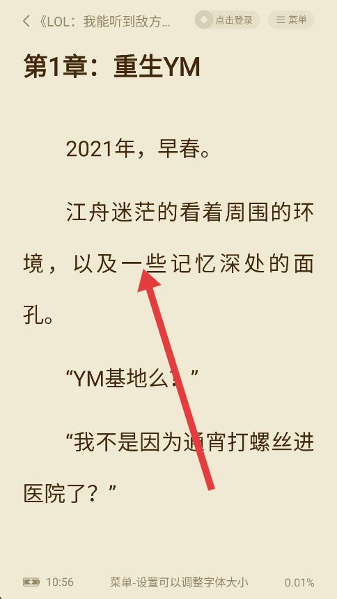 2、在小說(shuō)閱讀界面,點(diǎn)擊屏幕中間位置,喚出隱藏功能欄。