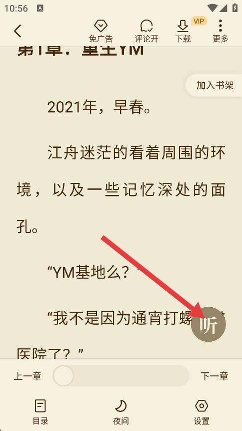 1、打開(kāi)app,選擇需要聽(tīng)的小說(shuō),點(diǎn)擊進(jìn)入閱讀界面。