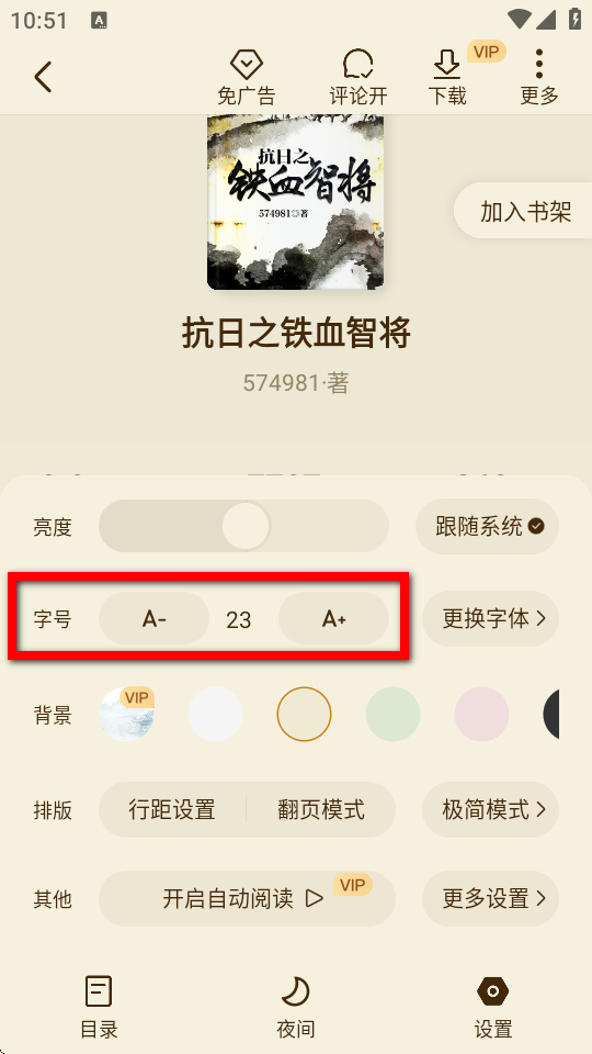 3、在小說(shuō)閱讀界面,點(diǎn)擊右下角設(shè)置選項(xiàng),進(jìn)入設(shè)置頁(yè)面。