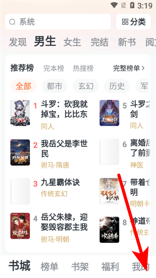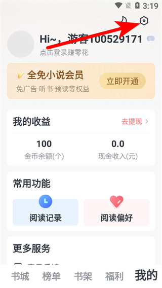 1、在全免小說(shuō)書(shū)城頁(yè)面,點(diǎn)擊右下角我的選項(xiàng),進(jìn)入個(gè)人中心頁(yè)面。