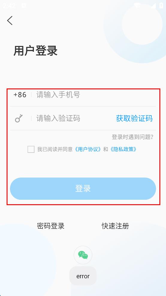 4、在用戶登錄頁(yè)面,輸入手機(jī)號(hào),點(diǎn)擊“獲取驗(yàn)證碼”,收到后輸入驗(yàn)證碼,勾選相關(guān)協(xié)議,點(diǎn)擊“登錄”按鈕完成登錄。