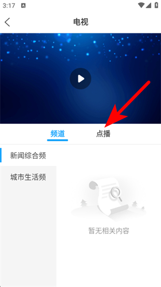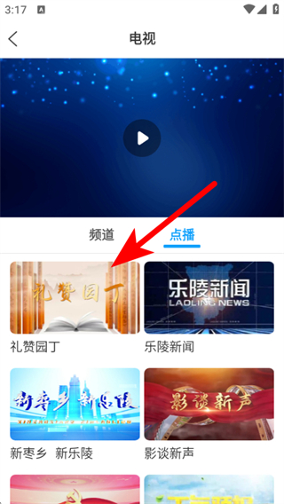 2、在電視頁(yè)面點(diǎn)擊點(diǎn)播的選項(xiàng),進(jìn)入可點(diǎn)播節(jié)目列表的頁(yè)面。