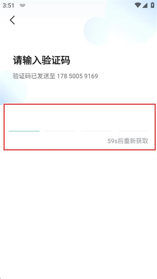 4、進(jìn)入驗(yàn)證碼輸入頁面,等待系統(tǒng)發(fā)送驗(yàn)證碼,將收到的內(nèi)容填寫至對(duì)應(yīng)輸入框。