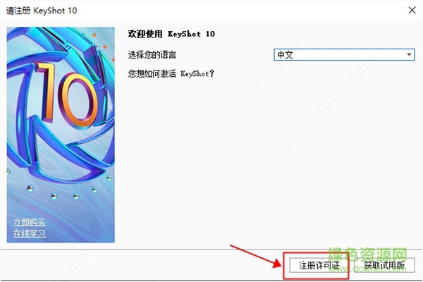 8、打開軟件選擇默認語言為中文,然后點擊注冊許可證;