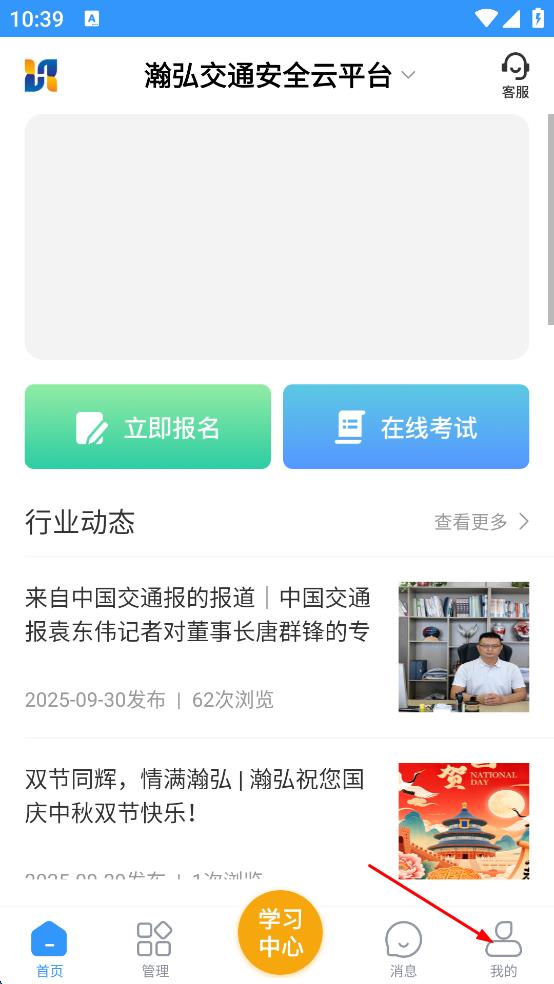 2、進入瀚弘交通安全云平臺頁面后,點擊右下角我的選項。