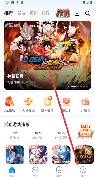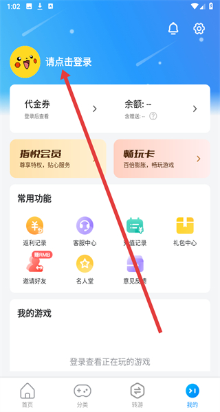 1、在游戲平臺(tái)主界面點(diǎn)擊右下角“我的”,進(jìn)入個(gè)人頁面。