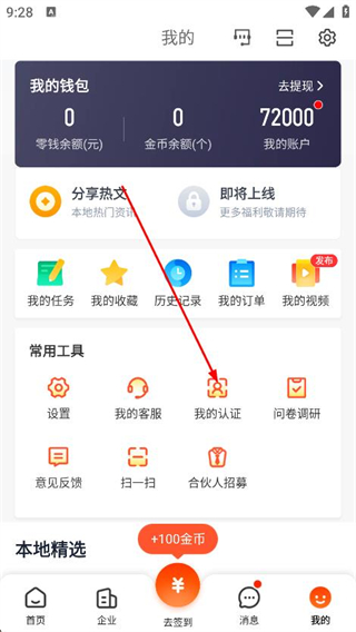 2、在我的頁(yè)面中,找到并點(diǎn)擊我的認(rèn)證選項(xiàng),進(jìn)入認(rèn)證中心。