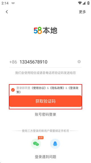 3、輸入手機(jī)號(hào),勾選同意協(xié)議后點(diǎn)擊獲取驗(yàn)證碼按鈕,準(zhǔn)備驗(yàn)證。