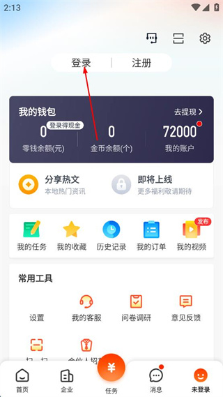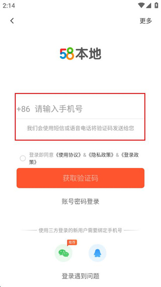 2、點(diǎn)擊登錄選項(xiàng),進(jìn)入手機(jī)號(hào)輸入界面。